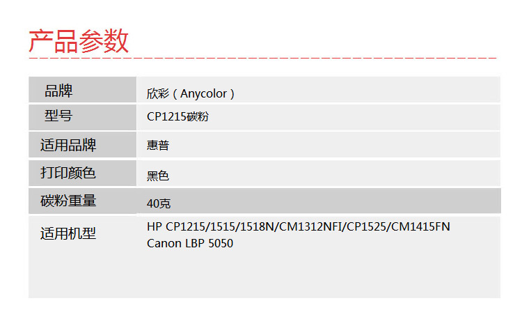> 办公耗材 复印纸 硒鼓 > 打印耗材 > 硒鼓 > 欣彩(Anycolor)CP1215碳粉 AT-1215K黑色 40g彩色墨粉 适用惠普HP CP1215 1515 1518N CP1525粉盒| 产品名称 : | 欣彩(Anycolor)CP1215碳粉 AT-1215K黑色 40g彩色墨粉 适用惠普HP CP1215 1515 1518N CP1525粉盒 |