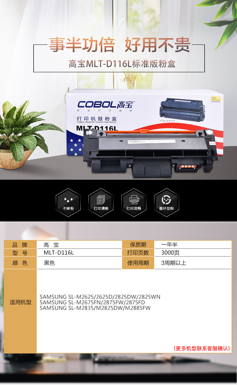 | 产品名称 : | 高宝 COBOL MLT-D116L标准版粉盒适用三星SL-M2625/2625D/2825DW/2825WN |