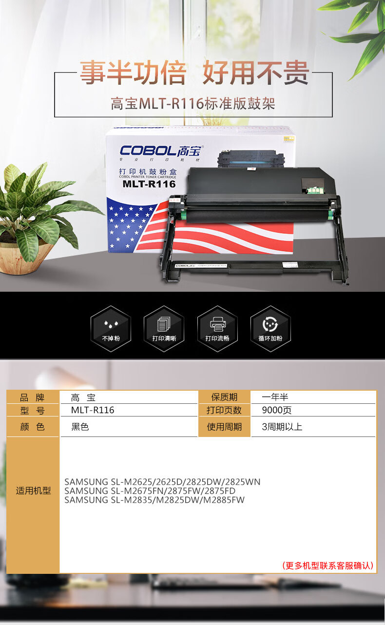 | 产品名称 : | 高宝 COBOL MLT-R116标准版鼓架适用三星SL-M2625/2625D/2825DW/2825WN |
