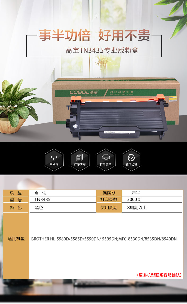 > 办公耗材 复印纸 硒鼓 > 打印耗材 > 硒鼓 > 高宝 COBOL TN3435 专业版粉盒适用 兄弟 HL-5580D/5585D/5590DN/ 5595DN;MFC-8530DN/8535DN/8540DN| 产品名称 : | 高宝 COBOL TN3435 专业版粉盒适用 兄弟 HL-5580D/5585D/5590DN/ 5595DN;MFC-8530DN/8535DN/8540DN |