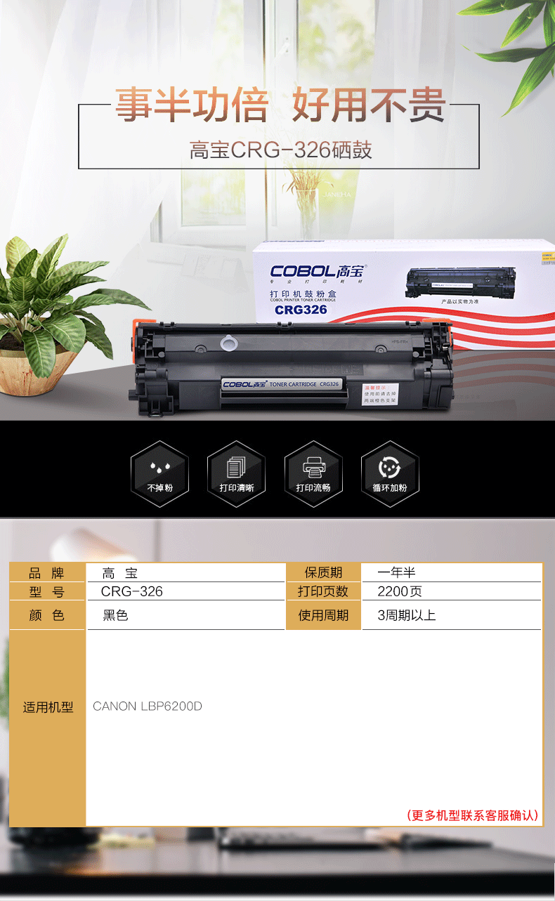 | 产品名称 : | 高宝 COBOL CRG-326标准版硒鼓适用CANON LBP6200D |