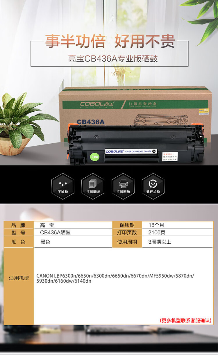 > 办公耗材 复印纸 硒鼓 > 打印耗材 > 硒鼓 > 高宝(COBOL)CB436A 专业版硒鼓 黑色适用惠普P1503/P1504/P1505/P1506/P1503n/P1504n/P1505n/P1506n| 产品名称 : | 高宝(COBOL)CB436A 专业版硒鼓 黑色适用惠普P1503/P1504/P1505/P1506/P1503n/P1504n/P1505n/P1506n |