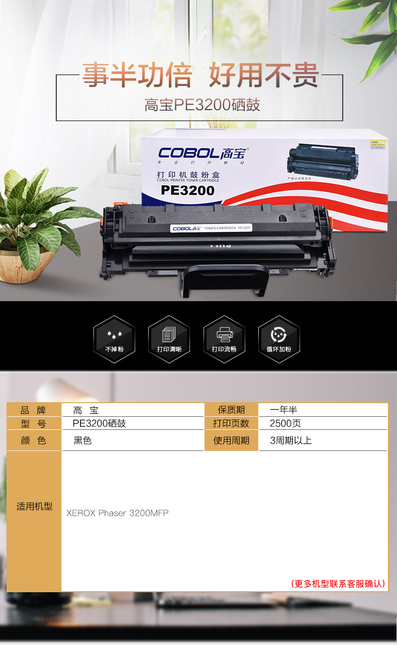 | 产品名称 : | 高宝 COBOL PE3200 标准版硒鼓适用XEROX Phaser 3200MFP |