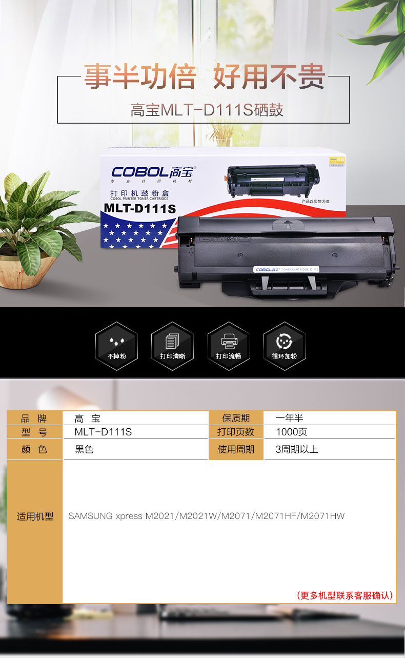 > 办公耗材 复印纸 硒鼓 > 打印耗材 > 硒鼓 > 高宝 COBOL MLT-D111S标准版硒鼓 黑色适用三星M2021/M2021W/M2071/M2071HF/M2071HW| 产品名称 : | 高宝 COBOL MLT-D111S标准版硒鼓 黑色适用三星M2021/M2021W/M2071/M2071HF/M2071HW |