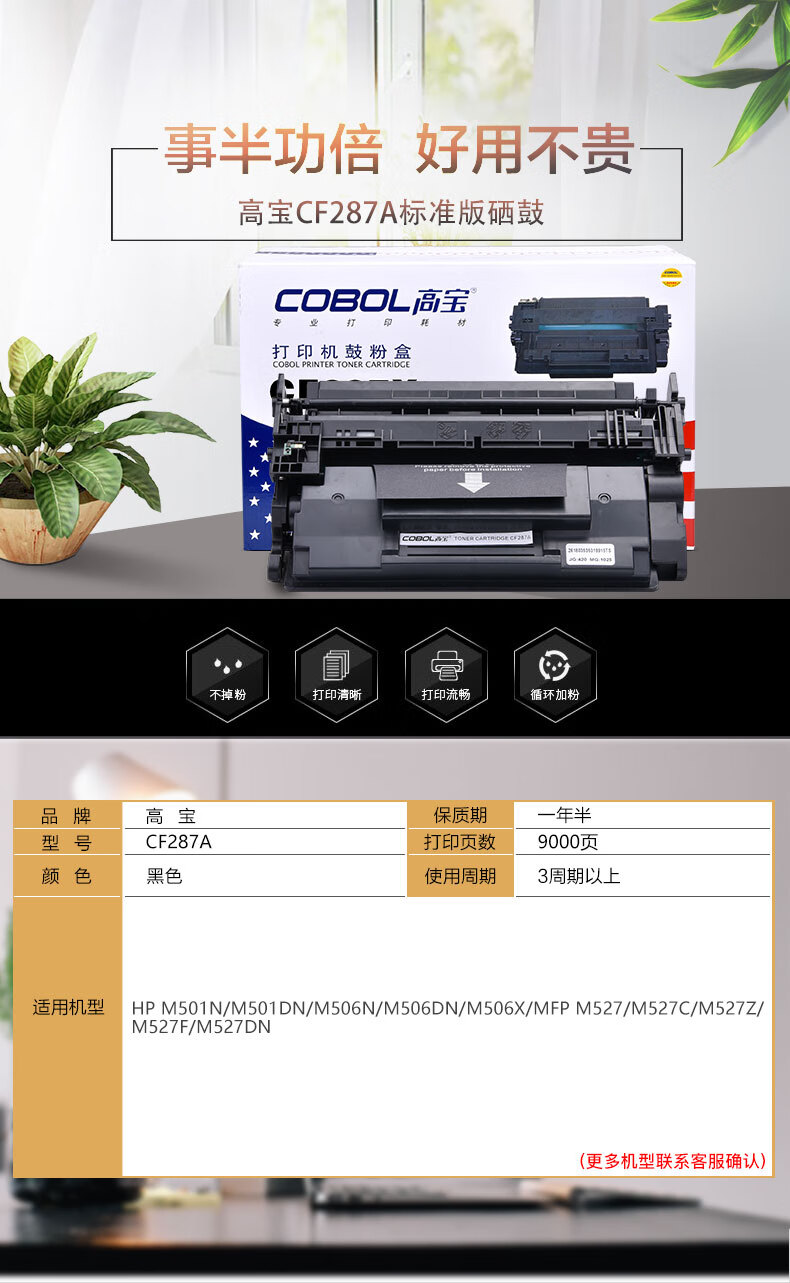 | 产品名称 : | 高宝CF287A标准版硒鼓适用惠普HP M506 MFP M527 M501dn打印机墨粉盒 |