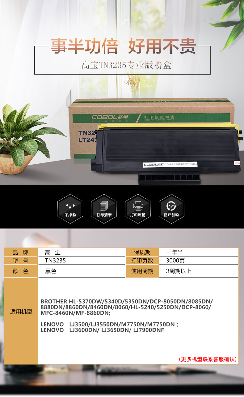 > 办公耗材 复印纸 硒鼓 > 打印耗材 > 硒鼓 > 高宝 COBOL TN3235专业版粉盒适用兄弟HL-5370DW/5340D/5350DN/DCP-8050DN/8085DN;联想LJ3500/LJ3550DN等| 产品名称 : | 高宝 COBOL TN3235专业版粉盒适用兄弟HL-5370DW/5340D/5350DN/DCP-8050DN/8085DN;联想LJ3500/LJ3550DN等 |
