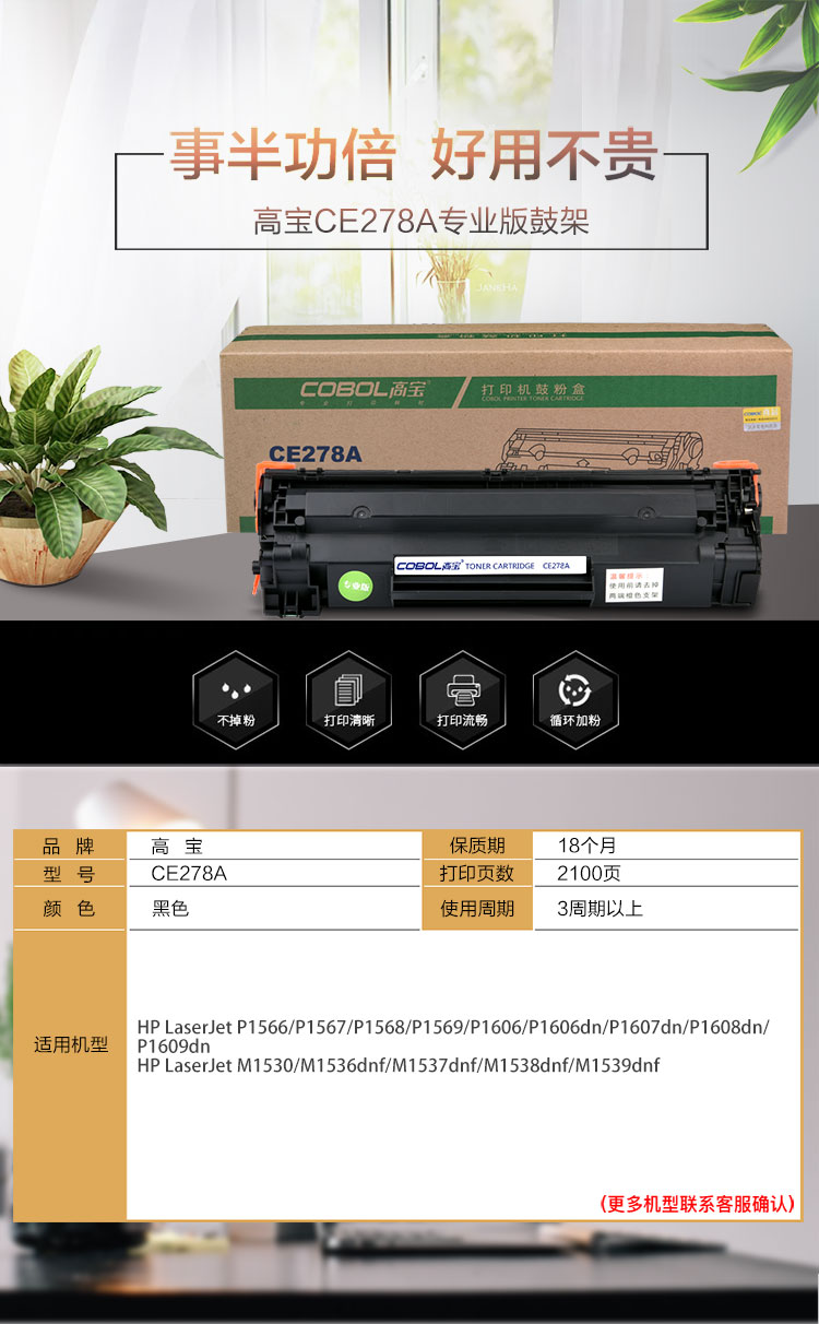> 办公耗材 复印纸 硒鼓 > 打印耗材 > 硒鼓 > 高宝(COBOL)CE278A专业版 硒鼓适用P1566/P1567/P1568/P1569/P1606/P1606dn/M1530/M1536dnf/M1537dnf| 产品名称 : | 高宝(COBOL)CE278A专业版 硒鼓适用P1566/P1567/P1568/P1569/P1606/P1606dn/M1530/M1536dnf/M1537dnf |