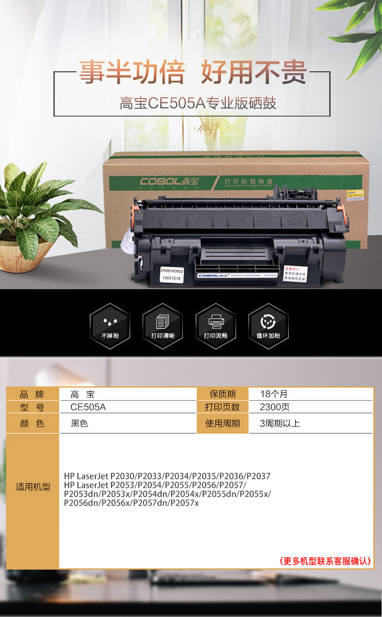 > 办公耗材 复印纸 硒鼓 > 打印耗材 > 硒鼓 > 高宝(COBOL)CE505A 专业版硒鼓 黑色适用惠普P2030/P2033/P2034/P2035/P2036/P2037| 产品名称 : | 高宝(COBOL)CE505A 专业版硒鼓 黑色适用惠普P2030/P2033/P2034/P2035/P2036/P2037 |