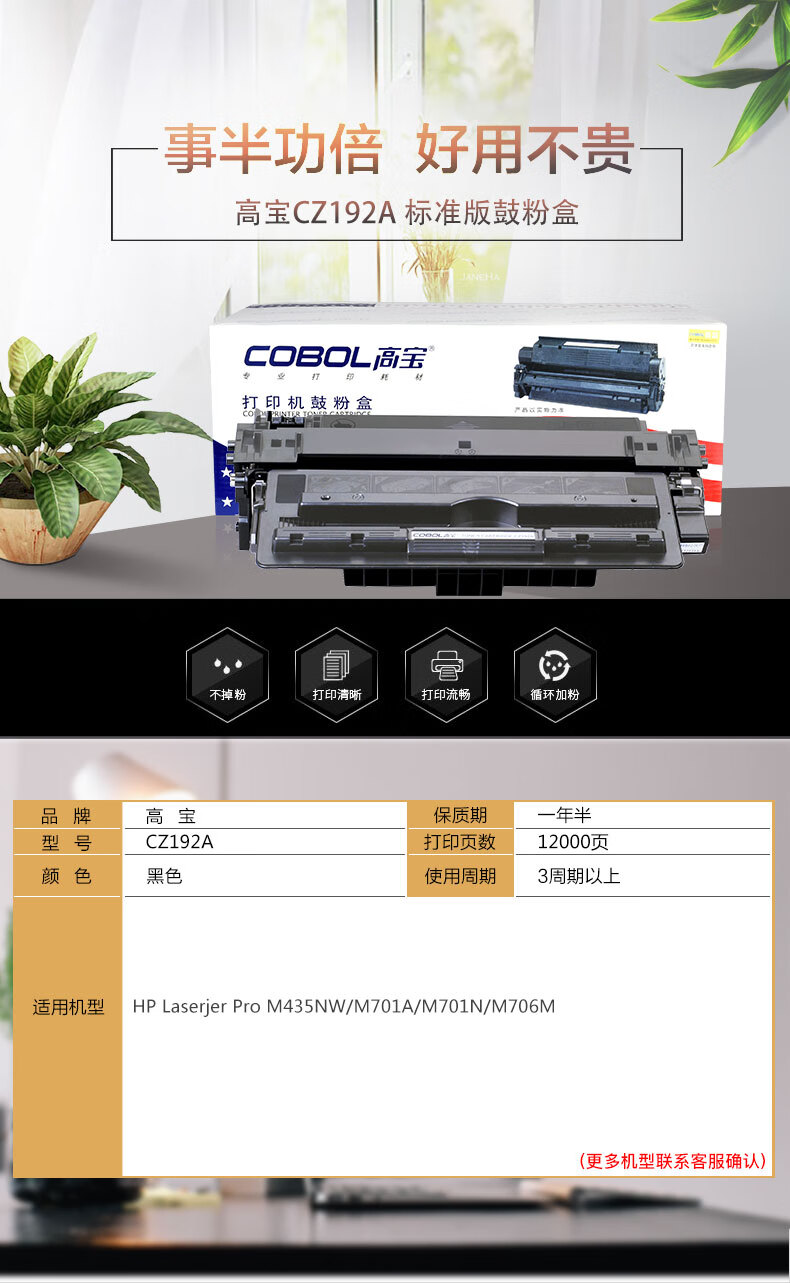 | 产品名称 : | 高宝 COBOL CZ192A 标准版硒鼓黑色适用惠普M435nw M701 M706打印机粉盒 |