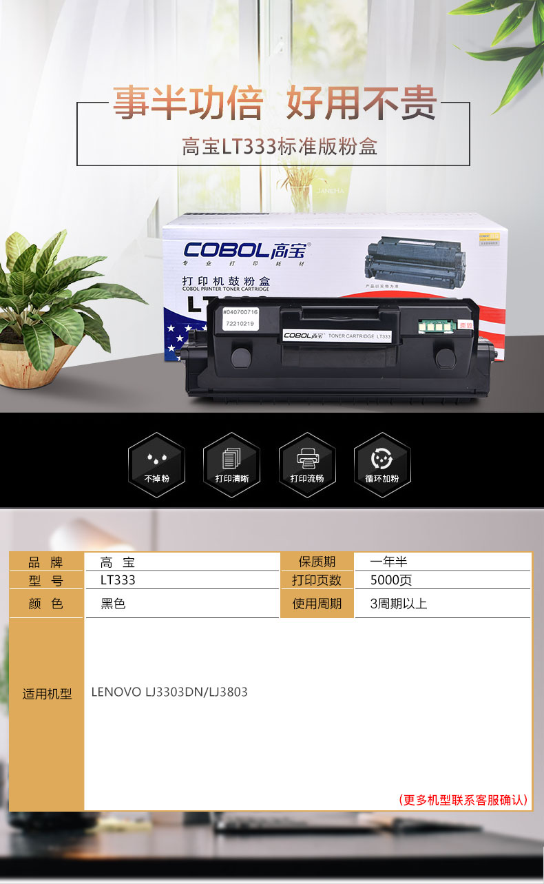 | 产品名称 : | 高宝 COBOL LT333 标准版粉盒适用LENOVO LJ3303DN/LJ3803 |