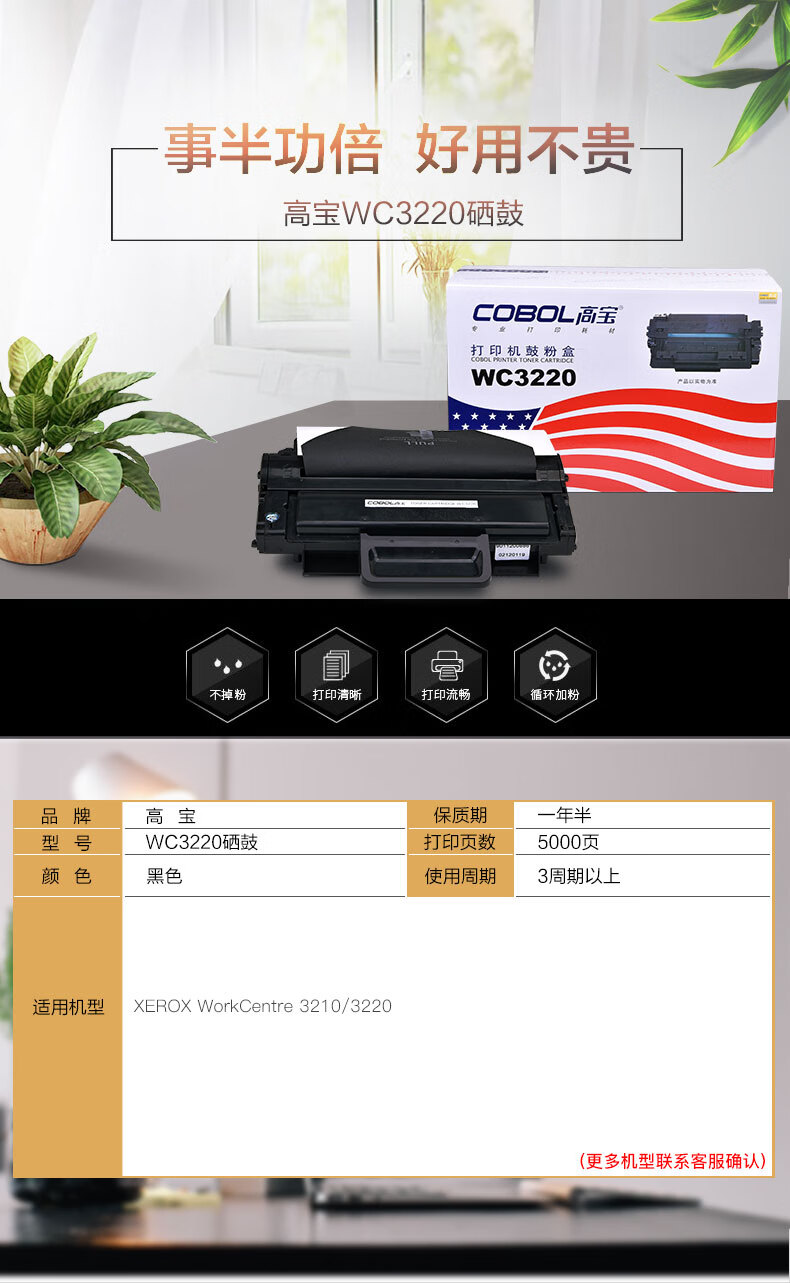 | 产品名称 : | 高宝 COBOL WC3220标准版硒鼓黑色适用XEROX WorkCentre 3210/3220 |