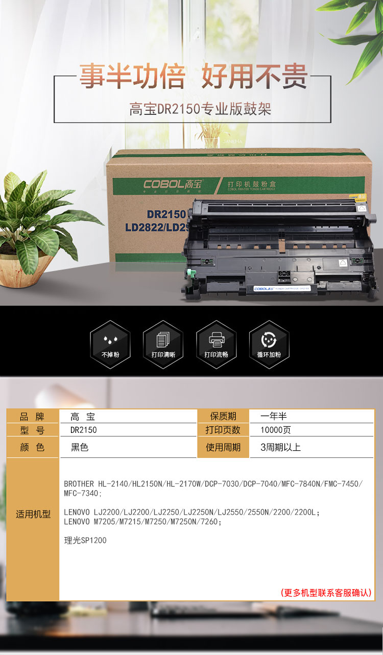 > 办公耗材 复印纸 硒鼓 > 打印耗材 > 硒鼓 > 高宝(COBOL)DR2150 专业版鼓架适用兄弟HL-2140/HL2150N/HL-2170W/DCP-7030/DCP-7040/MFC-7840N| 产品名称 : | 高宝(COBOL)DR2150 专业版鼓架适用兄弟HL-2140/HL2150N/HL-2170W/DCP-7030/DCP-7040/MFC-7840N |