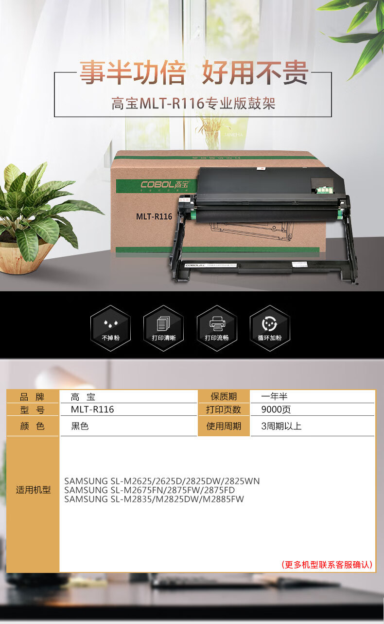 | 产品名称 : | 高宝 COBOL MLT-R116专业版鼓架适用三星SL-M2625/2625D/2825DW/2825WN |