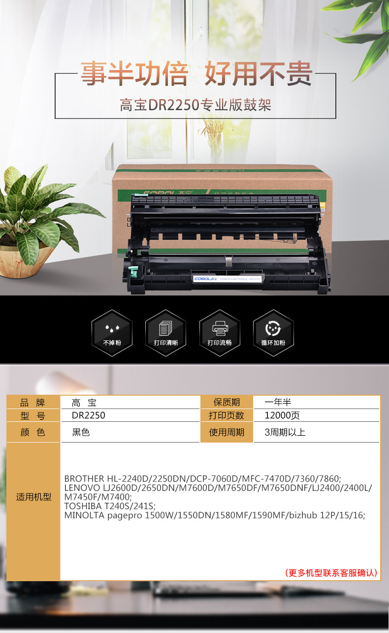 > 办公耗材 复印纸 硒鼓 > 打印耗材 > 硒鼓 > 高宝(COBOL)DR2250 专业版鼓架适用兄弟 HL-2240D/2250DN/DCP-7060D 联想LJ2600D/2650DN/M7600D/M7650DF| 产品名称 : | 高宝(COBOL)DR2250 专业版鼓架适用兄弟 HL-2240D/2250DN/DCP-7060D 联想LJ2600D/2650DN/M7600D/M7650DF |