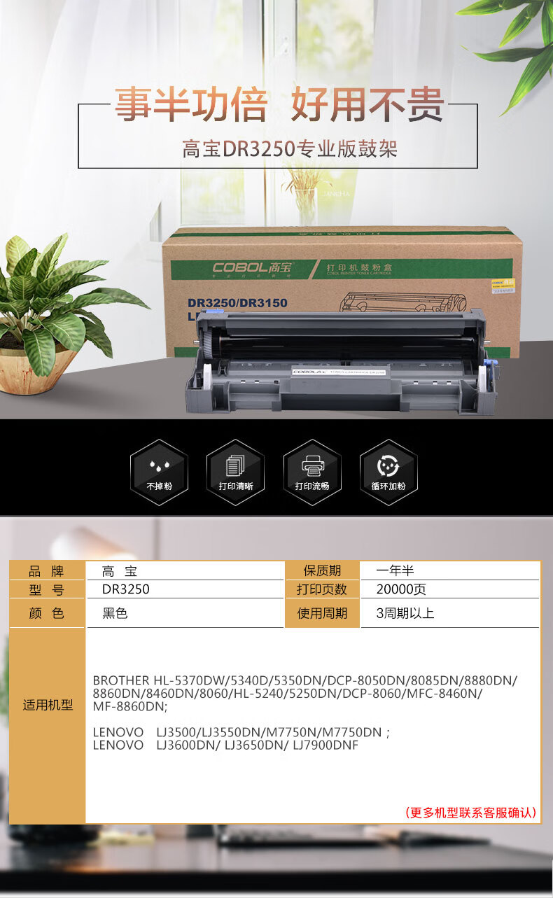 产品名称 : 高宝 COBOL DR3250 专业版鼓架适用BROTHER HL-5370DW/5340D/5350DN/DCP-8050DN/8085DN/8880DN/8860DN等