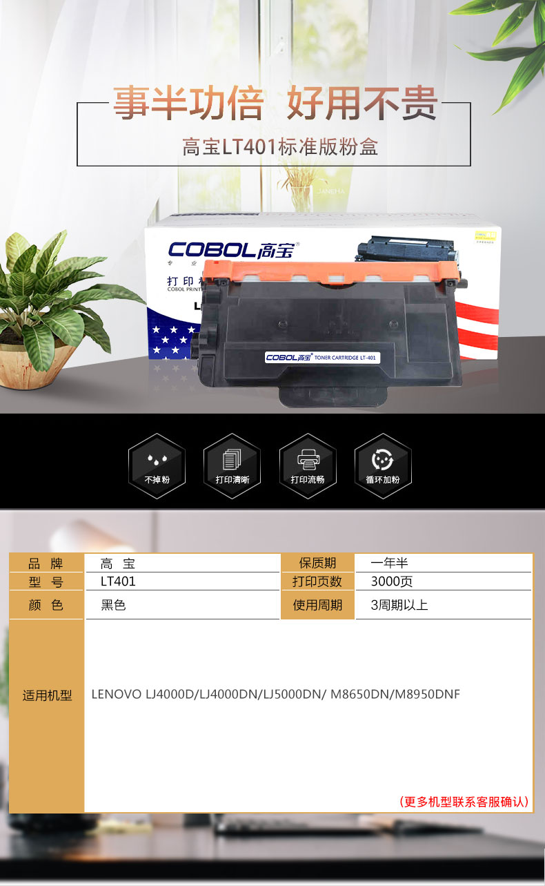 产品名称 : 高宝 COBOL LT401 标准版粉盒黑色适用LENOVO LJ4000D/LJ4000DN/LJ5000DN/ M8650DN/M8950DNF