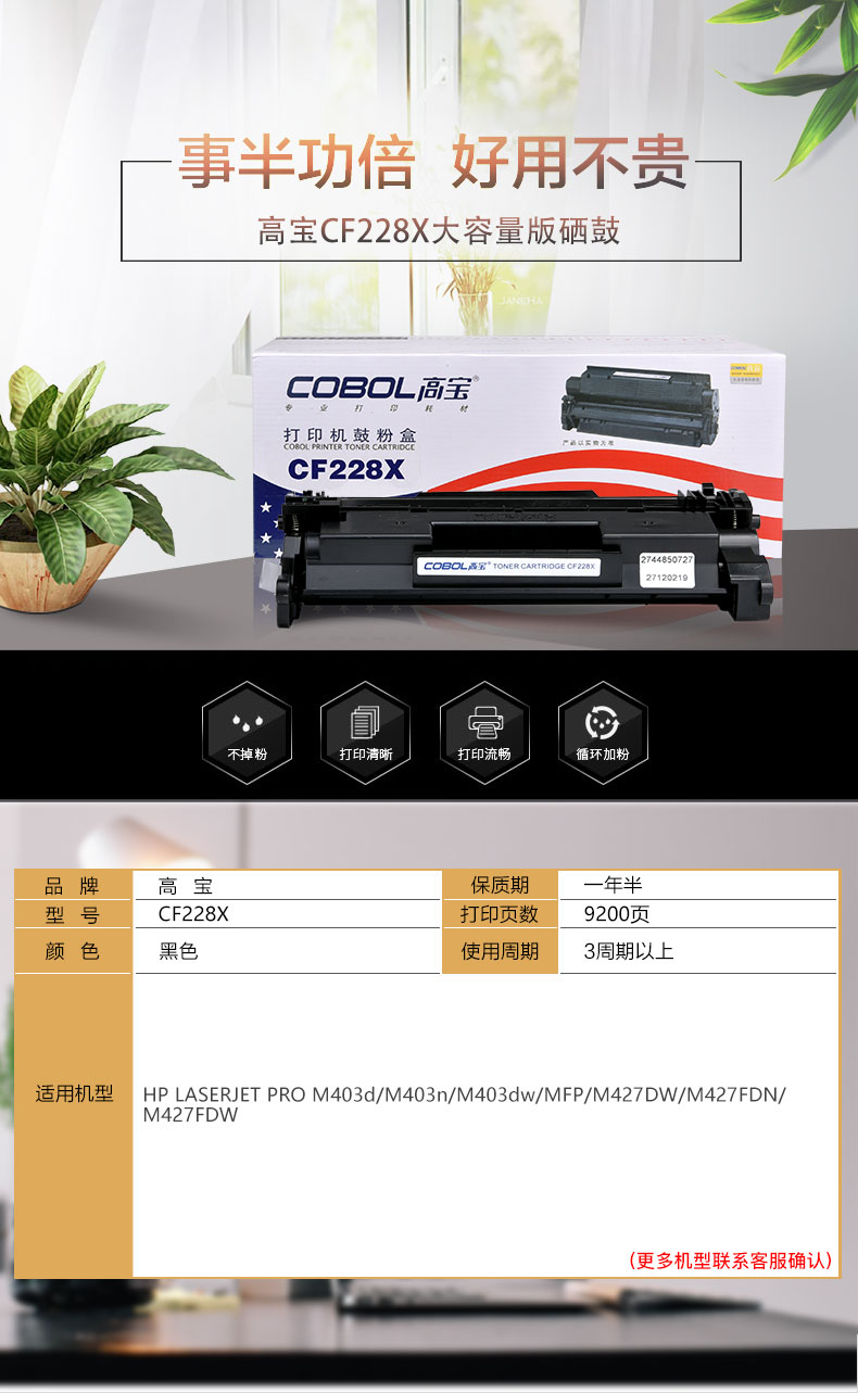 > 办公耗材 复印纸 硒鼓 > 打印耗材 > 硒鼓 > 高宝CF228X大容量版硒鼓适用惠普M403d/M403n/M403dw/MFP/M427DW/M427FDN/M427FDW打印机| 产品名称 : | 高宝CF228X大容量版硒鼓适用惠普M403d/M403n/M403dw/MFP/M427DW/M427FDN/M427FDW打印机 |