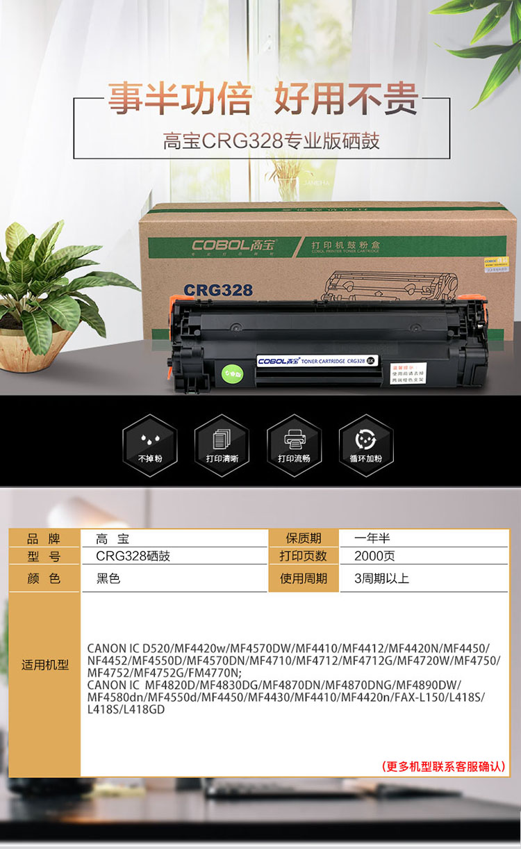 > 办公耗材 复印纸 硒鼓 > 打印耗材 > 硒鼓 > 高宝(COBOL)CRG328 专业版 硒鼓适用佳能D520/MF4420w/MF4570DW/MF4410/MF4412/MF4420N| 产品名称 : | 高宝(COBOL)CRG328 专业版 硒鼓适用佳能D520/MF4420w/MF4570DW/MF4410/MF4412/MF4420N |