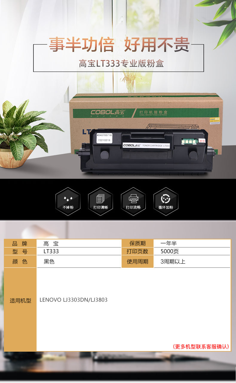 | 产品名称 : | 高宝 COBOL LT333 专业版粉盒适用LENOVO LJ3303DN/LJ3803 |