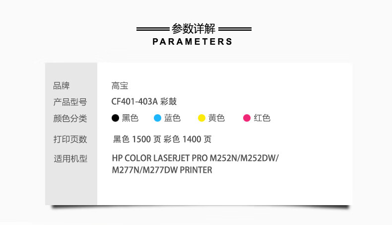 | 产品名称 : | 高宝(COBOL)CF402A 专业版硒鼓 黄色适用惠普M575dn/ M575f/ MFP M575c |