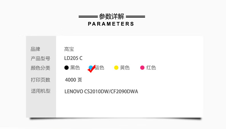 | 产品名称 : | 高宝LD205硒鼓粉盒蓝色适用联想CS2010DW CF2090DWA打印机墨盒 |