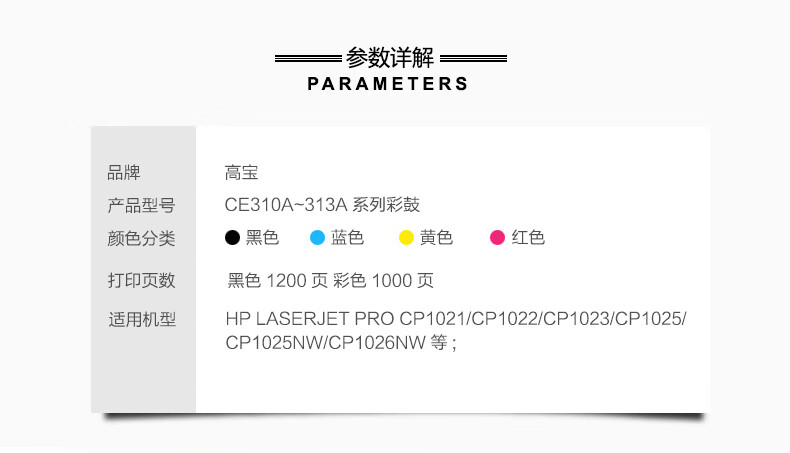 > 办公耗材 复印纸 硒鼓 > 打印耗材 > 硒鼓 > 高宝CE310A标准版硒鼓黑色适用惠普CP1021/CP1022/CP1023/CP1025/CP1025nw/CP1026nw/CP1027nw打印机| 产品名称 : | 高宝CE310A标准版硒鼓黑色适用惠普CP1021/CP1022/CP1023/CP1025/CP1025nw/CP1026nw/CP1027nw打印机 |
