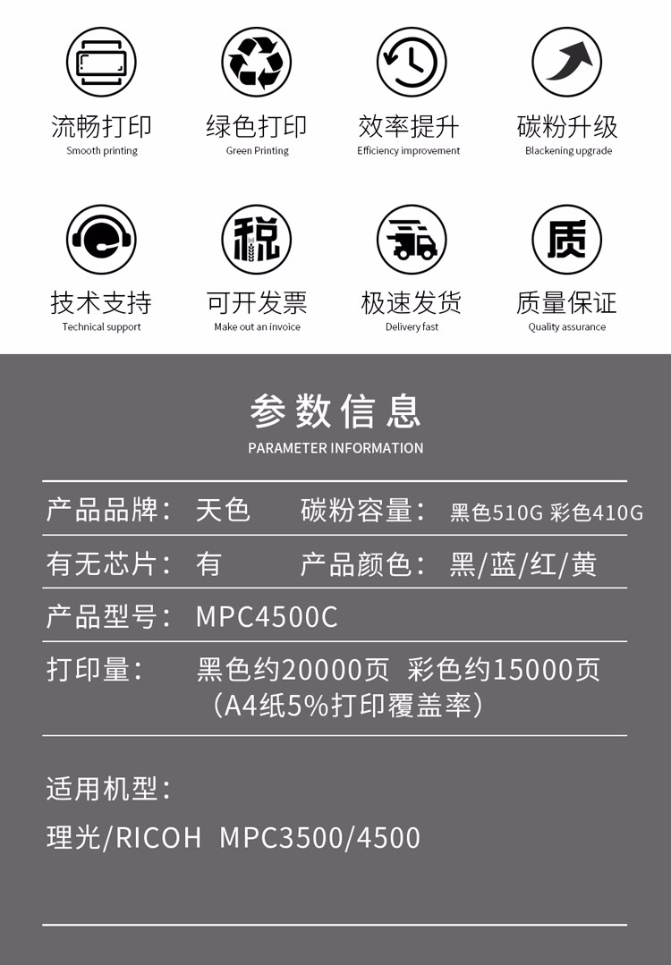> 办公耗材 复印纸 硒鼓 > 打印耗材 > 硒鼓 > 天色大容量适用理光Ricoh;MP;C4500墨粉盒C3500复印机碳粉;C3500彩粉 MPC4500大容量碳粉410克蓝色| 产品名称 : | 天色大容量适用理光Ricoh;MP;C4500墨粉盒C3500复印机碳粉;C3500彩粉 MPC4500大容量碳粉410克蓝色 |