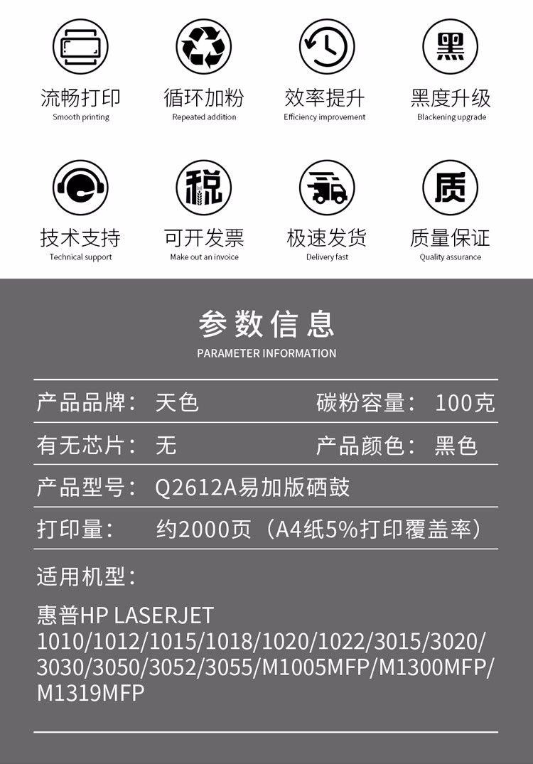 > 办公耗材 复印纸 硒鼓 > 打印耗材 > 硒鼓 > 天色适用惠普m1005硒鼓HP1020PLUS墨盒打印机HP1010墨粉盒1022mfp 12a 【爆款推荐】Q2612a易加粉2000页/4支装| 产品名称 : | 天色适用惠普m1005硒鼓HP1020PLUS墨盒打印机HP1010墨粉盒1022mfp 12a 【爆款推荐】Q2612a易加粉2000页/4支装 |