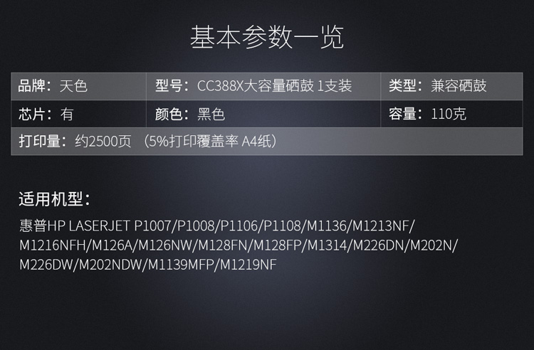 > 办公耗材 复印纸 硒鼓 > 打印耗材 > 硒鼓 > 天色大容量CC388X硒鼓适用惠普hp1136粉盒hp1108墨盒hp1008;hp1106 388 【品质优选】CC388X大容量2500页/2支装| 产品名称 : | 天色大容量CC388X硒鼓适用惠普hp1136粉盒hp1108墨盒hp1008;hp1106 388 【品质优选】CC388X大容量2500页/2支装 |