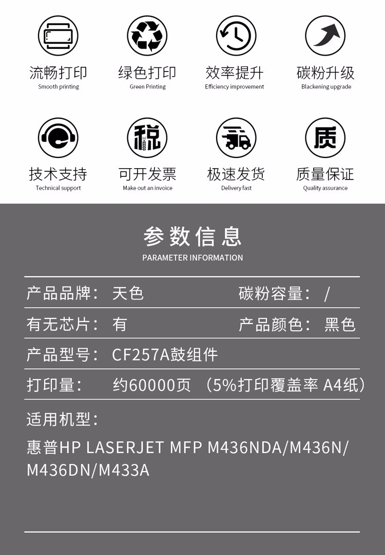 > 办公耗材 复印纸 硒鼓 > 打印耗材 > 硒鼓 > 天色CF256A粉盒适用惠普M436n墨粉MFP M436nda粉盒hp56A硒鼓碳粉m433a CF256A粉盒2个【优惠组合】-14800页| 产品名称 : | 天色CF256A粉盒适用惠普M436n墨粉MFP M436nda粉盒hp56A硒鼓碳粉m433a CF256A粉盒2个【优惠组合】-14800页 |