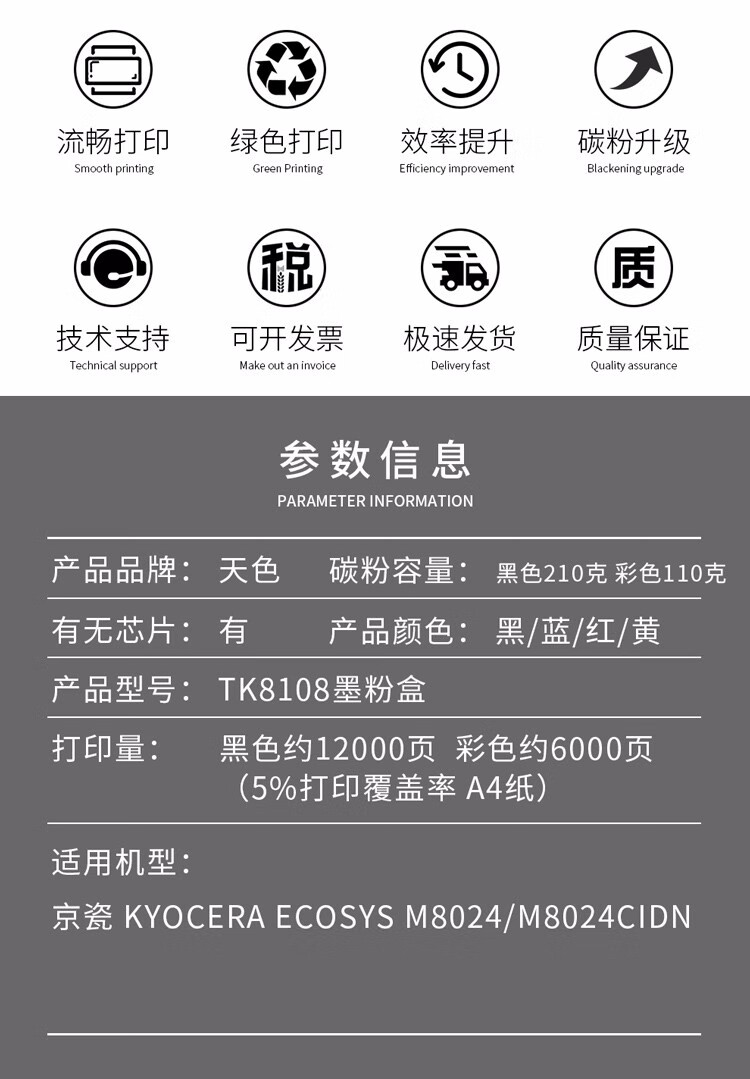 > 办公耗材 复印纸 硒鼓 > 打印耗材 > 硒鼓 > 天色大容量TK8108墨粉盒适用京瓷M8024cidn复印机碳粉京瓷8024ci墨盒 TK-8108粉盒蓝色-6000页 TASKalfa M8024cidn| 产品名称 : | 天色大容量TK8108墨粉盒适用京瓷M8024cidn复印机碳粉京瓷8024ci墨盒 TK-8108粉盒蓝色-6000页 TASKalfa M8024cidn |