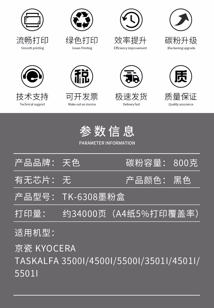 > 办公耗材 复印纸 硒鼓 > 打印耗材 > 硒鼓 > 天色适用京瓷TK6308粉盒TASKALFA 3501i碳粉4501i墨盒5501i墨粉盒3500i 大容量TK6308粉盒| 产品名称 : | 天色适用京瓷TK6308粉盒TASKALFA 3501i碳粉4501i墨盒5501i墨粉盒3500i 大容量TK6308粉盒 |