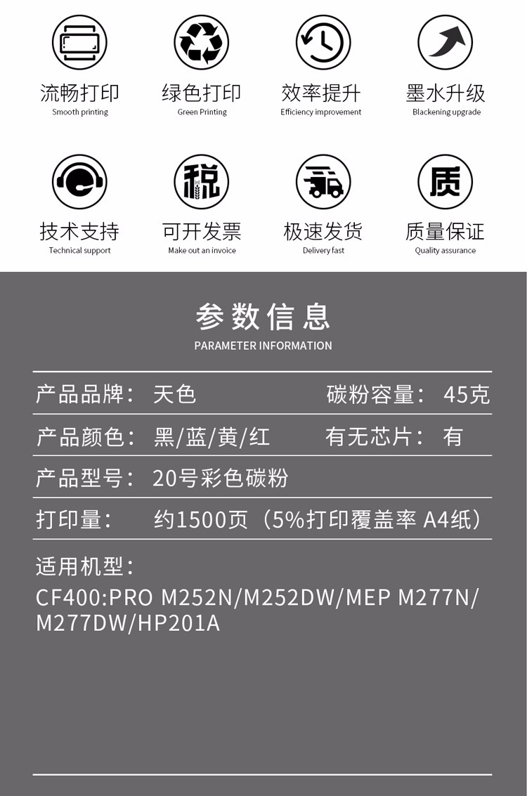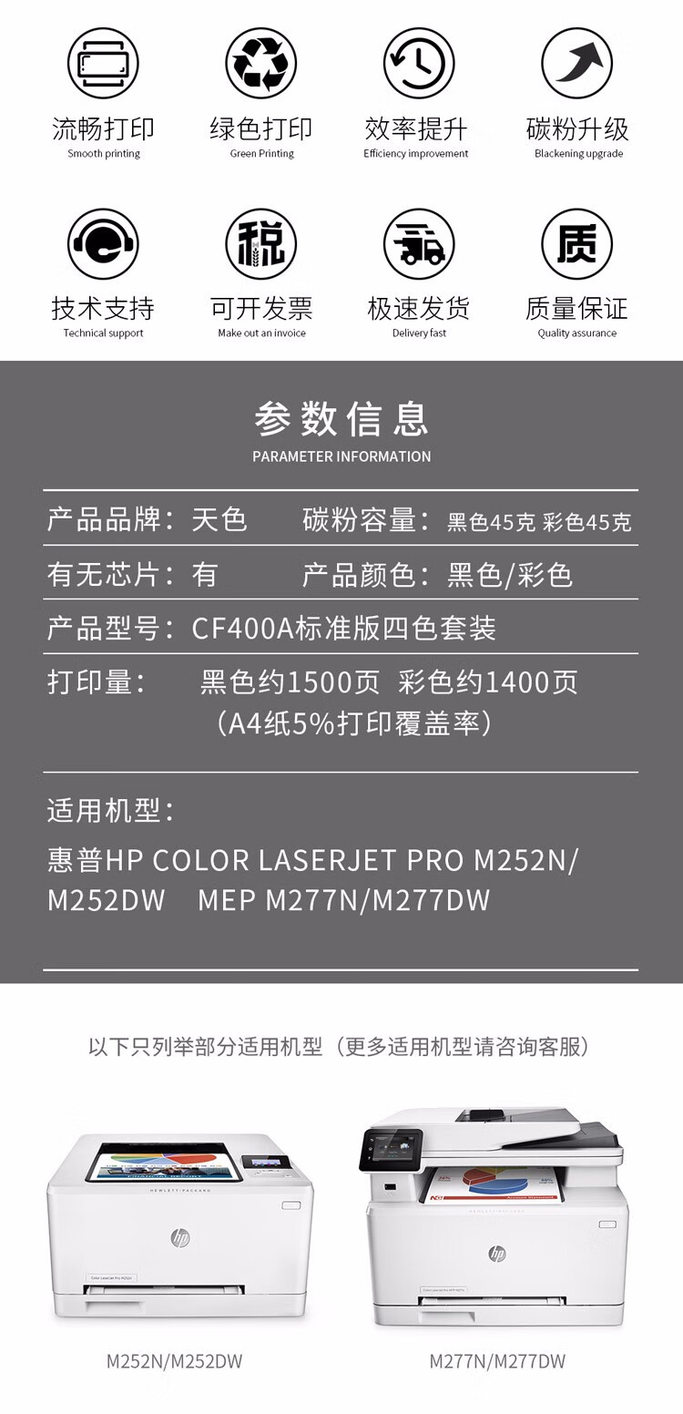 > 办公耗材 复印纸 硒鼓 > 打印耗材 > 硒鼓 > 天色适用惠普201A硒鼓HP M252N碳粉m252DW打印机粉盒M277DW墨盒M274N墨粉 CF400A四色硒鼓【易加粉套装】5700页| 产品名称 : | 天色适用惠普201A硒鼓HP M252N碳粉m252DW打印机粉盒M277DW墨盒M274N墨粉 CF400A四色硒鼓【易加粉套装】5700页 |