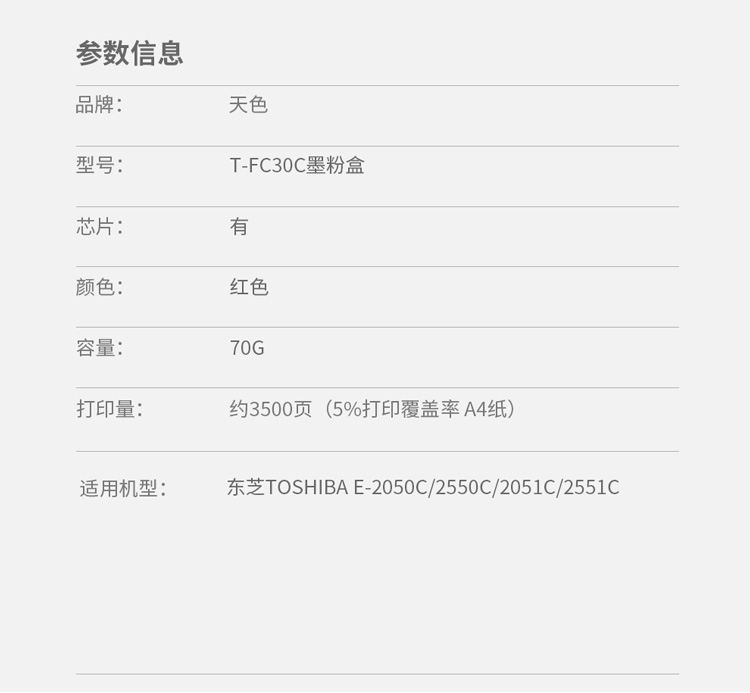 > 办公耗材 复印纸 硒鼓 > 打印耗材 > 硒鼓 > 天色 粉盒 T-FC30C 洋红色M (适用于Toshiba E-2050C/2550C/2051C/2551C)阳光旗舰版 Z| 产品名称 : | 天色 粉盒 T-FC30C 洋红色M (适用于Toshiba E-2050C/2550C/2051C/2551C)阳光旗舰版 Z |