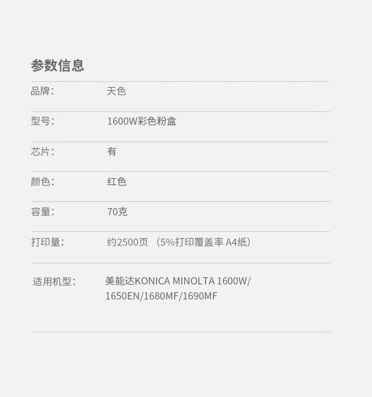 > 办公耗材 复印纸 硒鼓 > 打印耗材 > 硒鼓 > 天色 粉盒 1600W 洋红色M (适用于KonicaMinolta1600W/1650EN/1680MF/1690MF)阳光旗舰版| 产品名称 : | 天色 粉盒 1600W 洋红色M (适用于KonicaMinolta1600W/1650EN/1680MF/1690MF)阳光旗舰版 |