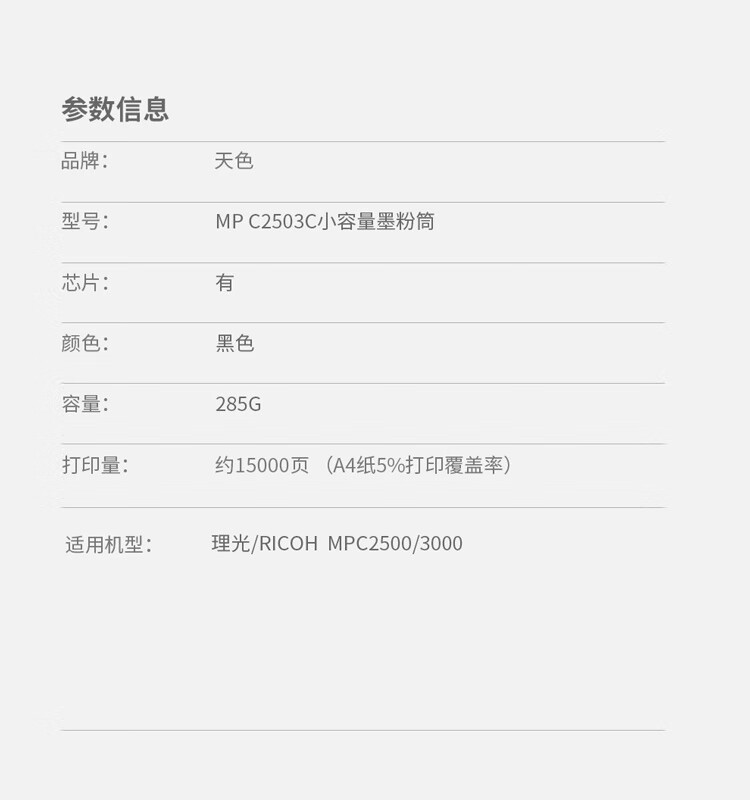 > 办公耗材 复印纸 硒鼓 > 打印耗材 > 硒鼓 > 天色 碳粉 理光 MP C2503C黑色K (适用于RicohMPC2003SP/2503SP/MP C2011SP)阳光旗舰版| 产品名称 : | 天色 碳粉 理光 MP C2503C黑色K (适用于RicohMPC2003SP/2503SP/MP C2011SP)阳光旗舰版 |