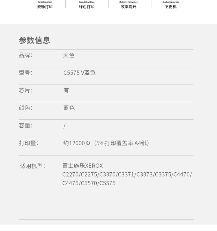 > 办公耗材 复印纸 硒鼓 > 打印耗材 > 硒鼓 > 天色 碳粉 施乐2270(默认中文版)4/5代机青蓝色C (适用于Xerox C2270/C2275/C3370/C3371/)阳光旗舰版| 产品名称 : | 天色 碳粉 施乐2270(默认中文版)4/5代机青蓝色C (适用于Xerox C2270/C2275/C3370/C3371/)阳光旗舰版 |