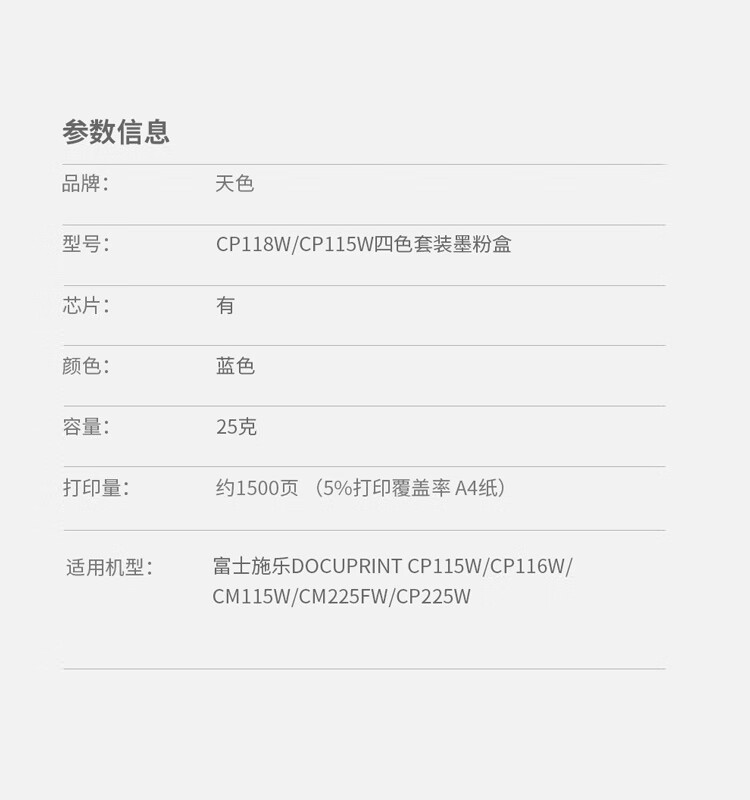 > 办公耗材 复印纸 硒鼓 > 打印耗材 > 硒鼓 > 天色 粉盒 CP118W/115W 青蓝色C (适用于XeroxDocuPrintCP115W/CP116W/CM115W/CM225FW/CP225W)阳光旗舰版| 产品名称 : | 天色 粉盒 CP118W/115W 青蓝色C (适用于XeroxDocuPrintCP115W/CP116W/CM115W/CM225FW/CP225W)阳光旗舰版 |