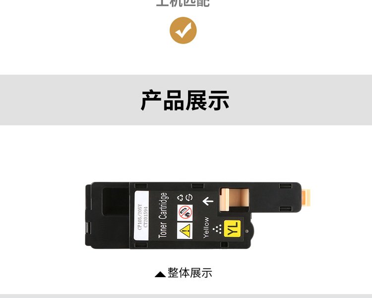 | 产品名称 : | 天色 粉盒 CP105B 黄色Y (适用于XeroxCP105/CP205/CM205F/CM205b)阳光旗舰版 |