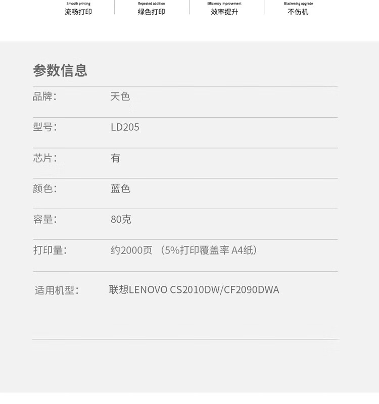 | 产品名称 : | 天色 硒鼓 LD205 青蓝色C (适用于LenovoCS2010DW/CF2090DWA)阳光旗舰版 |