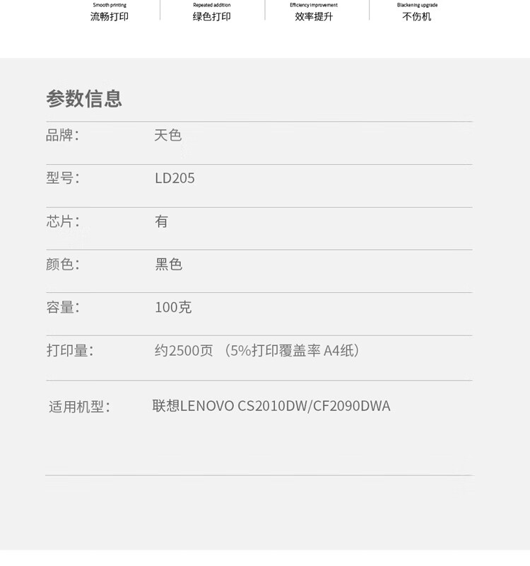 | 产品名称 : | 天色 硒鼓 LD205 黑色K (适用于LenovoCS2010DW/CF2090DWA)阳光旗舰版 |