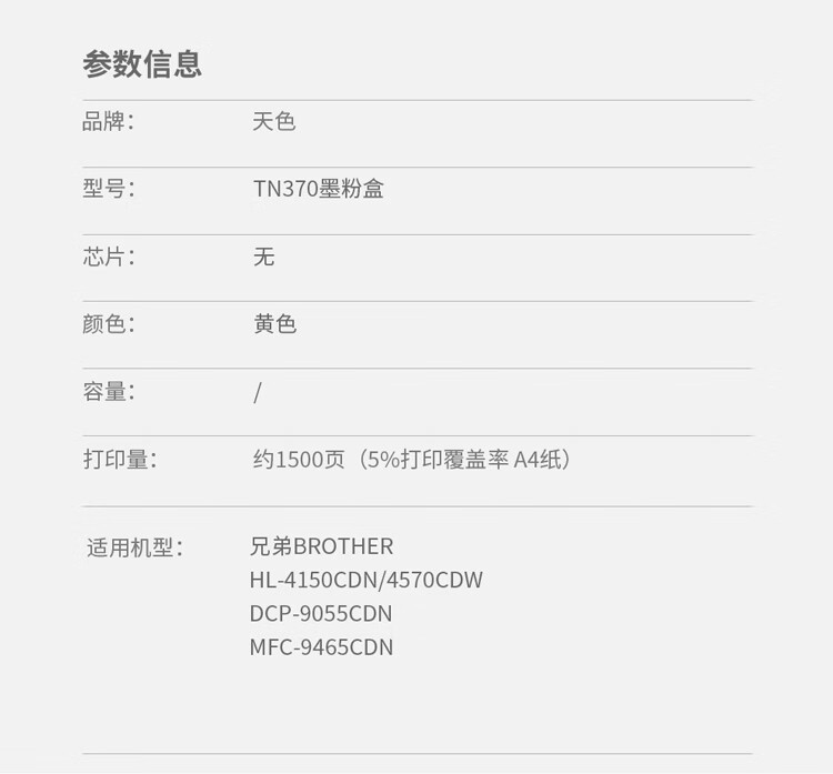 > 办公耗材 复印纸 硒鼓 > 打印耗材 > 硒鼓 > 天色 粉盒 TN370 洋红色M (适用于Brother HL-4140CN/HL-4150CDN/HL-4570CDWT/HL-4570CDW)阳光旗舰版 Z| 产品名称 : | 天色 粉盒 TN370 洋红色M (适用于Brother HL-4140CN/HL-4150CDN/HL-4570CDWT/HL-4570CDW)阳光旗舰版 Z |