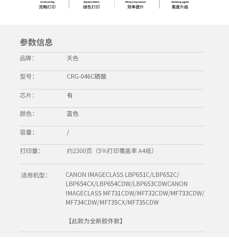 > 办公耗材 复印纸 硒鼓 > 打印耗材 > 硒鼓 > 天色 硒鼓 兼容佳能 CRG046 青蓝色C (适用于CANON iC MF735Cx/iC MF732Cdw/LBP654Cx)阳光旗舰版 Z| 产品名称 : | 天色 硒鼓 兼容佳能 CRG046 青蓝色C (适用于CANON iC MF735Cx/iC MF732Cdw/LBP654Cx)阳光旗舰版 Z |