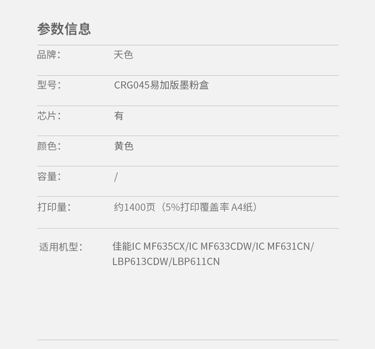 > 办公耗材 复印纸 硒鼓 > 打印耗材 > 硒鼓 > 天色 硒鼓 兼容佳能 CRG045 黄色Y (适用于CANON iC MF635Cx/iC MF633Cdw/iC MF631Cn)阳光旗舰版 Z| 产品名称 : | 天色 硒鼓 兼容佳能 CRG045 黄色Y (适用于CANON iC MF635Cx/iC MF633Cdw/iC MF631Cn)阳光旗舰版 Z |