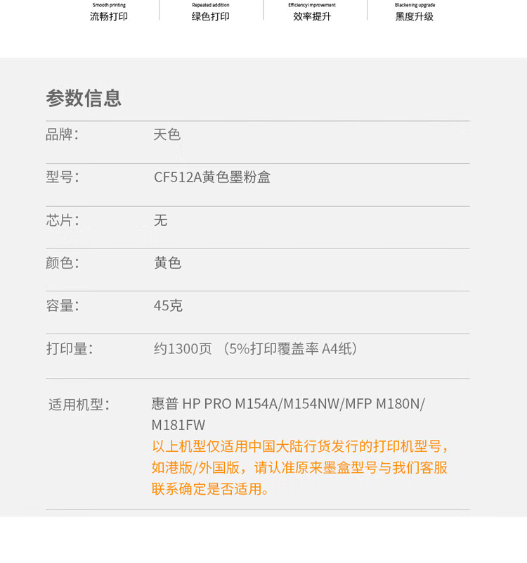 > 办公耗材 复印纸 硒鼓 > 打印耗材 > 硒鼓 > 天色 硒鼓 CF510/1/2/3A 黄色Y (适用于HP PRO M154/M154NW/MFP M108N/M181FW/180n)阳光旗舰版| 产品名称 : | 天色 硒鼓 CF510/1/2/3A 黄色Y (适用于HP PRO M154/M154NW/MFP M108N/M181FW/180n)阳光旗舰版 |