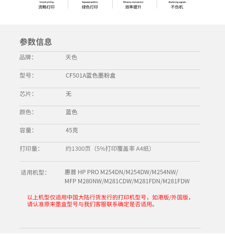 > 办公耗材 复印纸 硒鼓 > 打印耗材 > 硒鼓 > 天色 硒鼓 CF500/1/2/3A 青蓝色C (适用于HP PRO M254DN/N254DW/M254NW/MFP M280NW/M281FDN阳光旗舰版 Z| 产品名称 : | 天色 硒鼓 CF500/1/2/3A 青蓝色C (适用于HP PRO M254DN/N254DW/M254NW/MFP M280NW/M281FDN阳光旗舰版 Z |