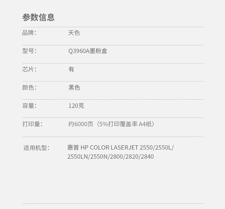 > 办公耗材 复印纸 硒鼓 > 打印耗材 > 硒鼓 > 天色 硒鼓 Q3960/1/2/3A 黑色K (适用于HP Color LaserJetPro 2550/2550L/2550LN)阳光旗舰版 Z| 产品名称 : | 天色 硒鼓 Q3960/1/2/3A 黑色K (适用于HP Color LaserJetPro 2550/2550L/2550LN)阳光旗舰版 Z |