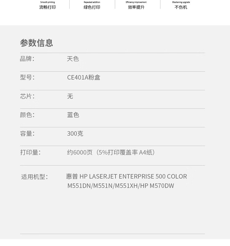 | 产品名称 : | 天色 硒鼓 CE400/1/2/3A 青蓝色C (适用于HPLaserJetM575dn/)阳光旗舰版 |