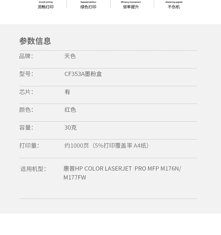 > 办公耗材 复印纸 硒鼓 > 打印耗材 > 硒鼓 > 天色 粉盒 CF350/1/2/3A 易加版 洋红色M (适用于HPColorLaserJetProMFPM176n/M177fw)阳光旗舰版 Z| 产品名称 : | 天色 粉盒 CF350/1/2/3A 易加版 洋红色M (适用于HPColorLaserJetProMFPM176n/M177fw)阳光旗舰版 Z |