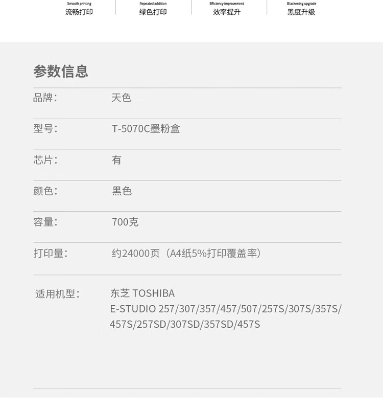 > 办公耗材 复印纸 硒鼓 > 打印耗材 > 硒鼓 > 天色 粉盒 东芝T-5070C 700g(适用于 E-studio257/307/357/457/507/257s/307s/357s)阳光旗舰版| 产品名称 : | 天色 粉盒 东芝T-5070C 700g(适用于 E-studio257/307/357/457/507/257s/307s/357s)阳光旗舰版 |